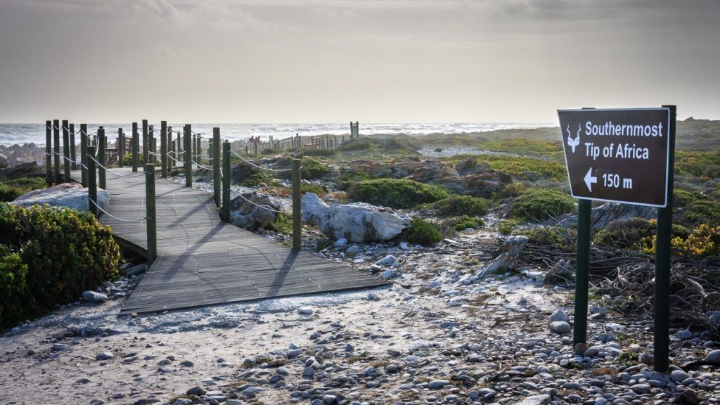 Visitiamo Cape Agulhas che rappresenta il punto più meridionale del continente africano, dove le acque